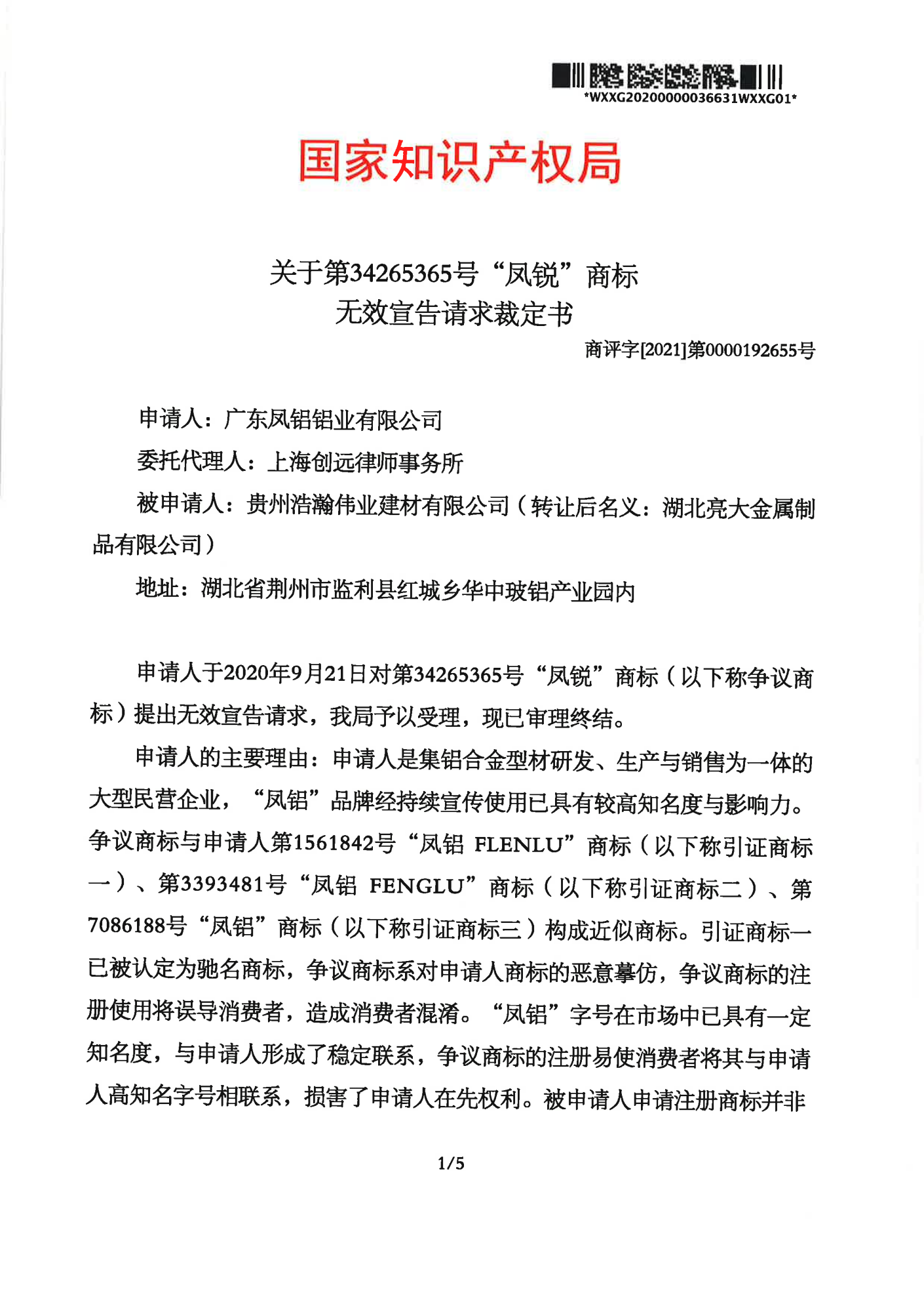 阿坝辉知队 | 国家知识产权局:“凤锐”商标无效